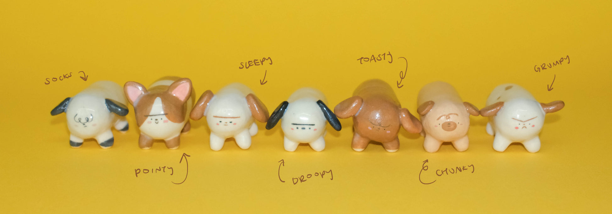 ✶ Due to their painted bodies, brown doggos (Pointy, Toasty and Chonky) are more textured compared to the non-coloured doggos